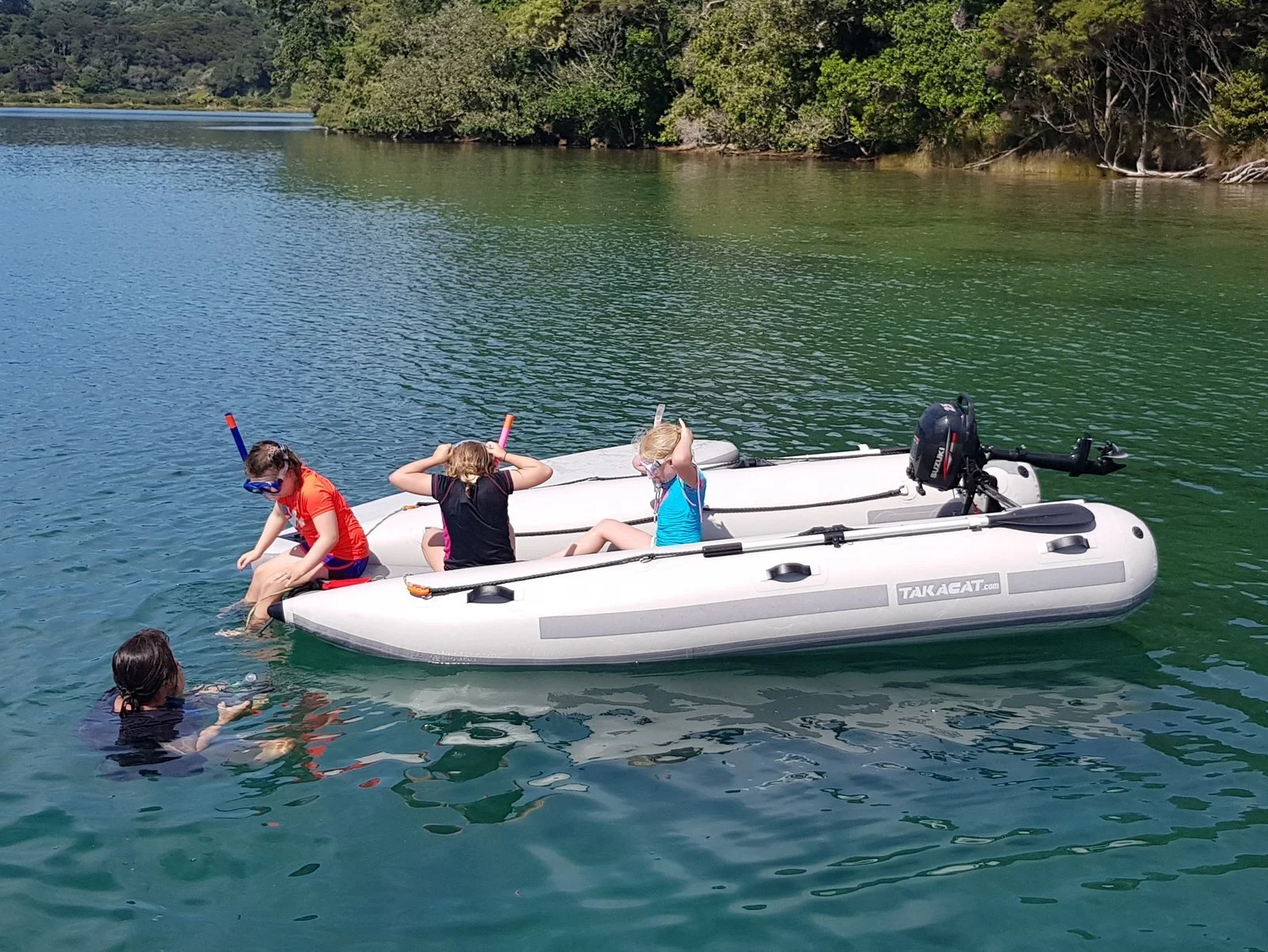 Stable, fast, and fun, Takacat is the ultimate in portable boats. With unique features like the open transom, open bow, and catamaran design, no other boat is like a Takacat. With the open transom design, a Takacat holds no water. The easy access open bow makes it easy to get on or off your Takacat. Even with the open transom and open bow, your Takacat is a very dry boat. The catamaran design makes it easy for a Takacat to get up and plane, while also being very stable, light, and safe. With Takacat’s built in oars, it’s very easy to row. The inflatable floor provides a very soft ride and in larger models, the floor can double as a SUP. Takacat’s single seam design makes your Takacat a very durable boat. With optional wheels, this lightweight boat is even easier to move about add option fishing rod holders to hold your fishing gear. Takacats also have a built in oar system. Takacats can be assembled in less than 15 minutes and come in two bags and can fit almost anywhere. Whether you’re looking for a fishing boat, a tender, a swimming/scuba boat, or family fun boat, check out Takacat.